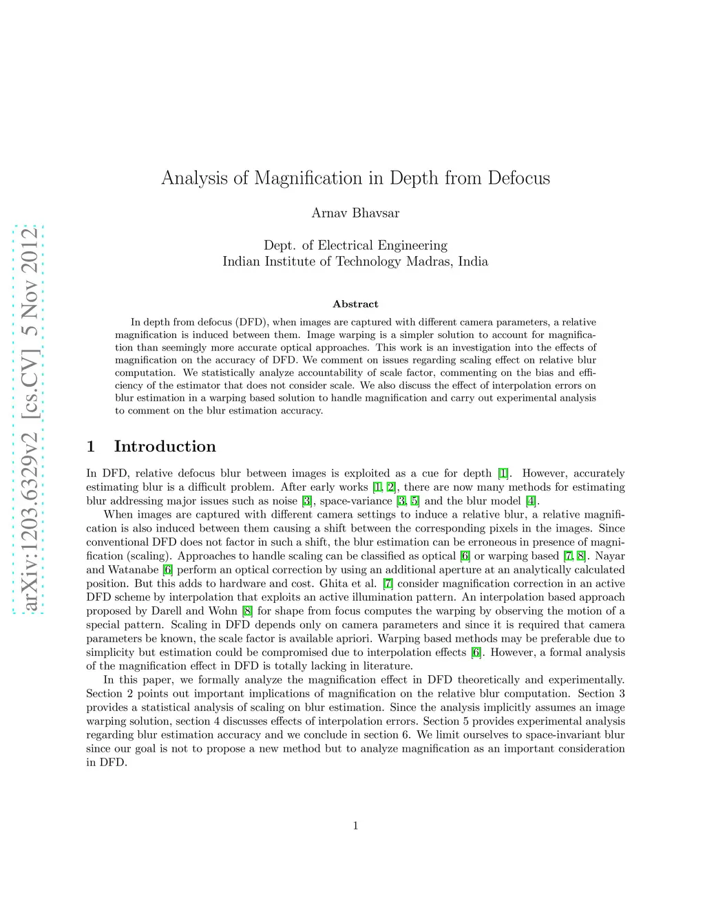 In depth from defocus (DFD), when images are captured with different camera parameters, a relative magnification is induced between them. Image warping is a simpler solution to account for magnification than seemingly more accurate optical approaches. This work is an investigation into the effects of magnification on the accuracy of DFD. We comment on issues regarding scaling effect on relative blur computation. We statistically analyze accountability of scale factor, commenting on the bias and efficiency of the estimator that does not consider scale. We also discuss the effect of interpolation errors on blur estimation in a warping based solution to handle magnification and carry out experimental analysis to comment on the blur estimation accuracy.