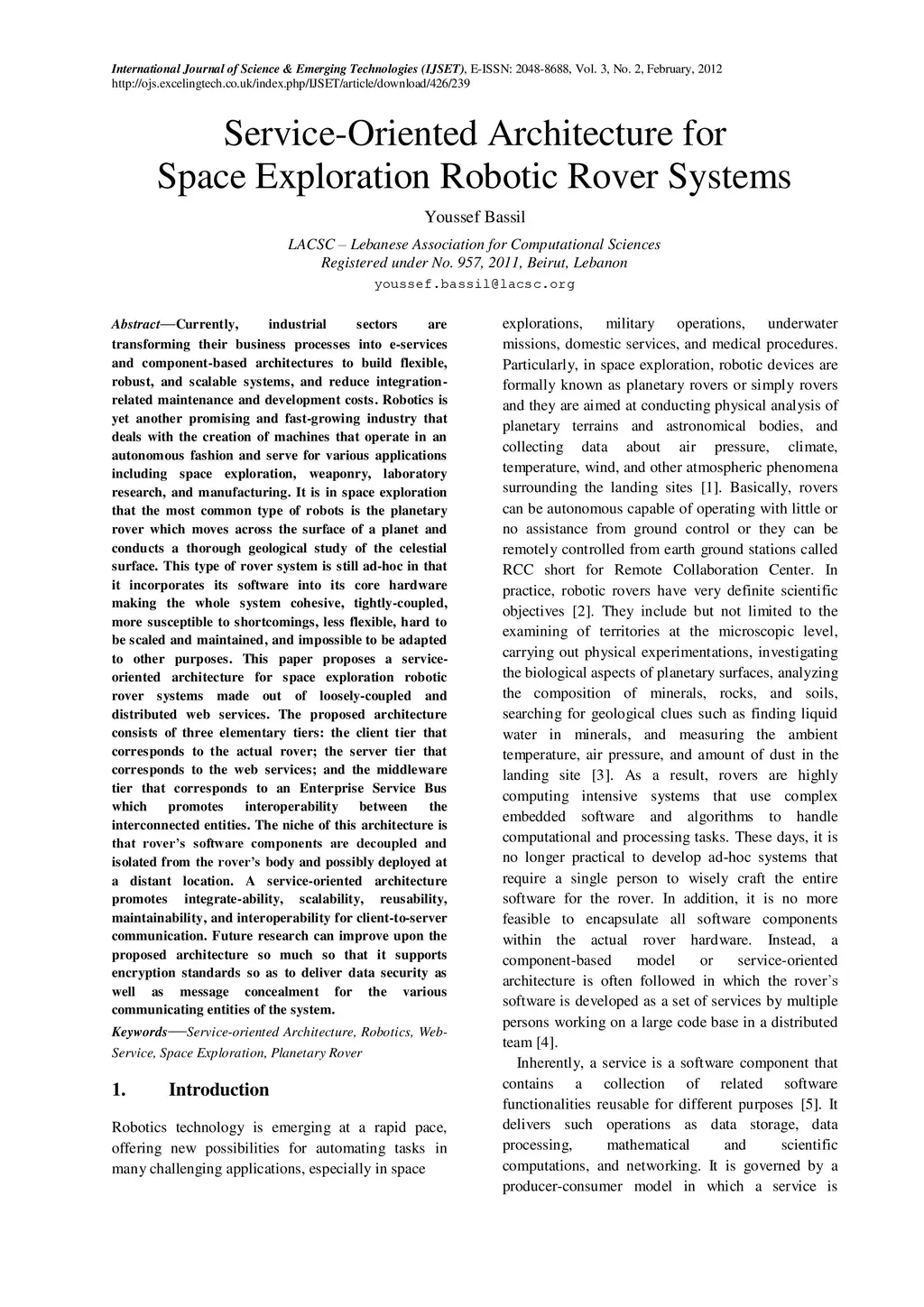 Service-Oriented Architecture for Space Exploration Robotic Rover