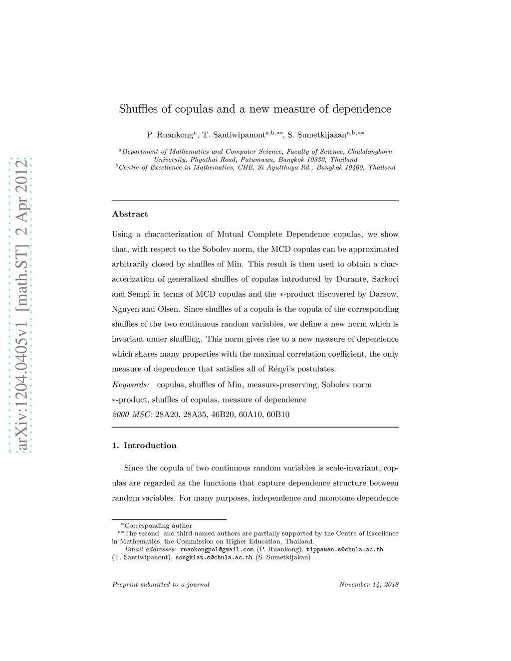 Using a characterization of Mutual Complete Dependence copulas, we show that, with respect to the Sobolev norm, the MCD copulas can be approximated arbitrarily closed by shuffles of Min. This result is then used to obtain a characterization of generalized shuffles of copulas introduced by Durante, Sarkoci and Sempi in terms of MCD copulas and the -product discovered by Darsow, Nguyen and Olsen. Since shuffles of a copula is the copula of the corresponding shuffles of the two continuous random variables, we define a new norm which is invariant under shuffling. This norm gives rise to a new measure of dependence which shares many properties with the maximal correlation coefficient, the only measure of dependence that satisfies all of R\ényi's postulates.