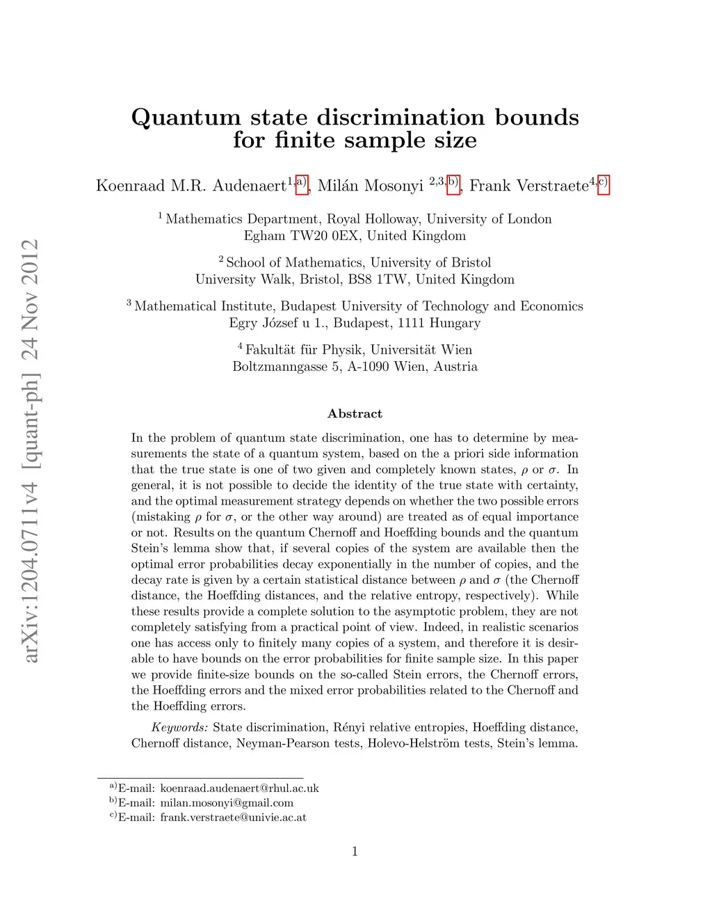 Quantum state discrimination bounds for finite sample size