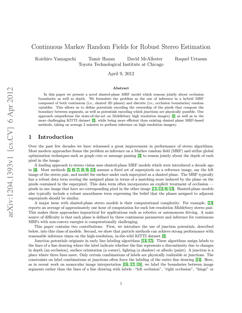 Continuous Markov Random Fields for Robust Stereo Estimation