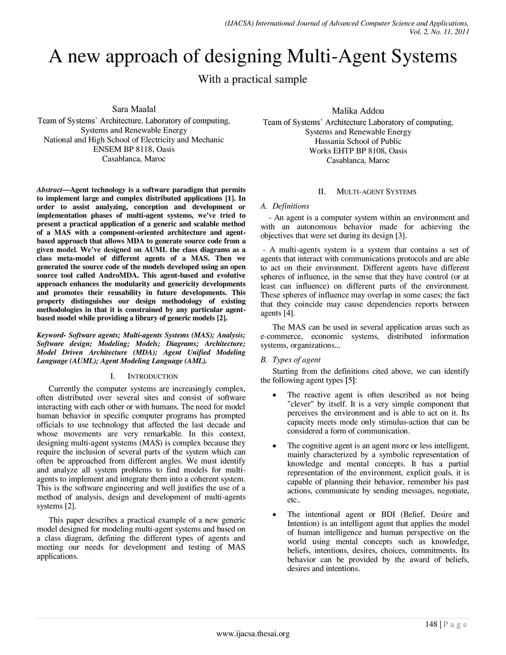 Agent technology is a software paradigm that permits to implement large and complex distributed applications. In order to assist analyzing, conception and development or implementation phases of multi-agent systems, we've tried to present a practical application of a generic and scalable method of a MAS with a component-oriented architecture and agent-based approach that allows MDA to generate source code from a given model. We've designed on AUML the class diagrams as a class meta-model of different agents of a MAS. Then we generated the source code of the models developed using an open source tool called AndroMDA. This agent-based and evolutive approach enhances the modularity and genericity developments and promotes their reusability in future developments. This property distinguishes our design methodology of existing methodologies in that it is constrained by any particular agent-based model while providing a library of generic models