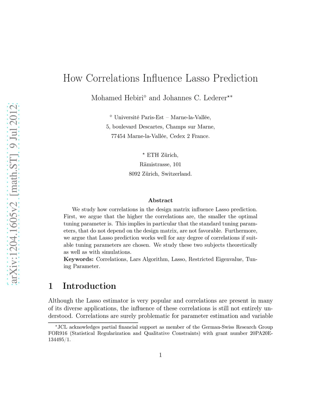 We study how correlations in the design matrix influence Lasso prediction. First, we argue that the higher the correlations are, the smaller the optimal tuning parameter is. This implies in particular that the standard tuning parameters, that do not depend on the design matrix, are not favorable. Furthermore, we argue that Lasso prediction works well for any degree of correlations if suitable tuning parameters are chosen. We study these two subjects theoretically as well as with simulations.