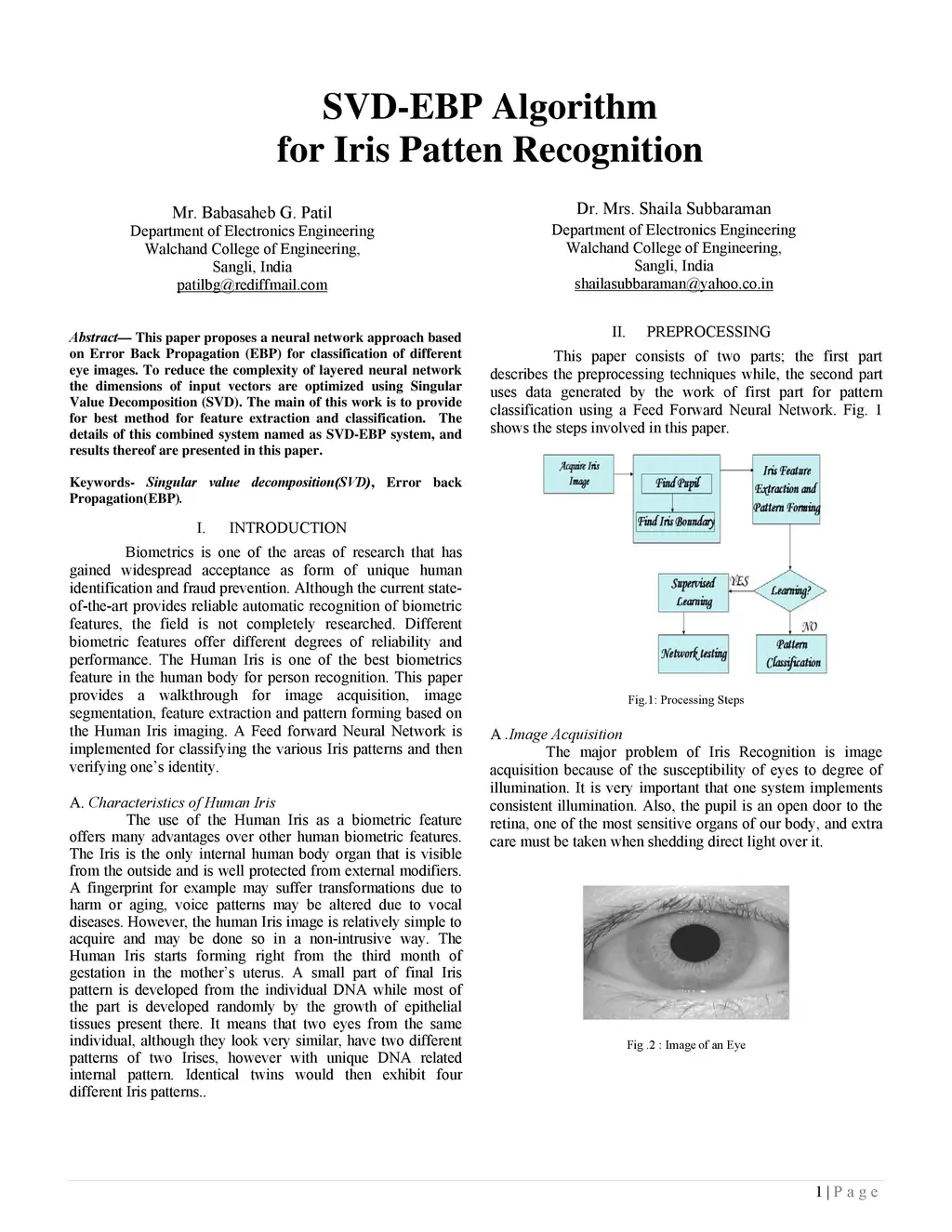 SVD-EBP Algorithm for Iris Pattern Recognition