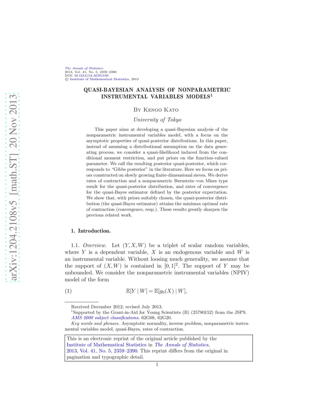 Quasi-Bayesian analysis of nonparametric instrumental variables models
