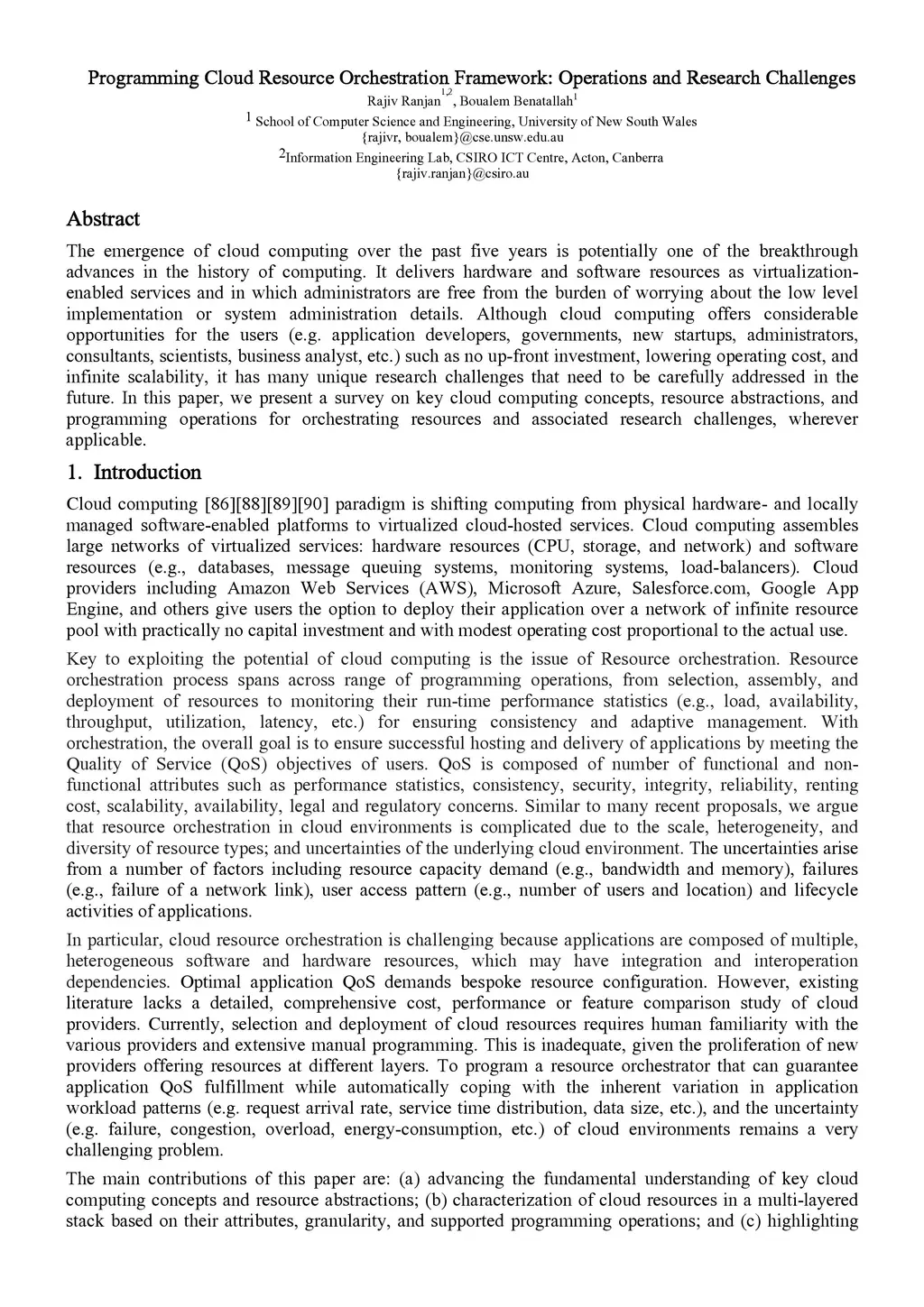 The emergence of cloud computing over the past five years is potentially one of the breakthrough advances in the history of computing. It delivers hardware and software resources as virtualization-enabled services and in which administrators are free from the burden of worrying about the low level implementation or system administration details. Although cloud computing offers considerable opportunities for the users (e.g. application developers, governments, new startups, administrators, consultants, scientists, business analyst, etc.) such as no up-front investment, lowering operating cost, and infinite scalability, it has many unique research challenges that need to be carefully addressed in the future. In this paper, we present a survey on key cloud computing concepts, resource abstractions, and programming operations for orchestrating resources and associated research challenges, wherever applicable.