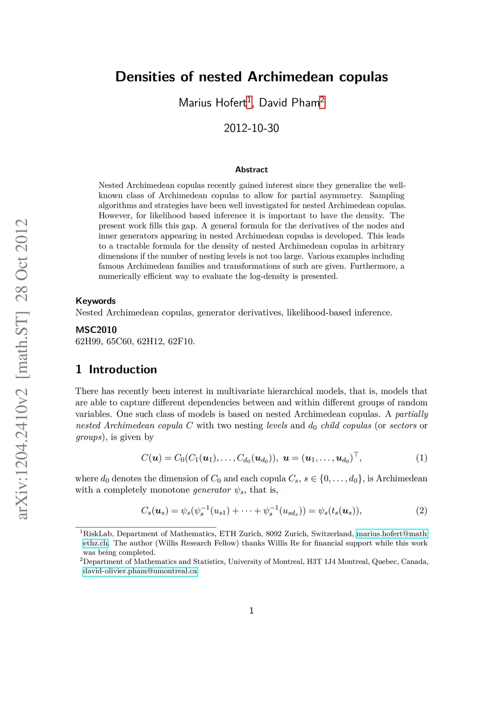 Densities of nested Archimedean copulas