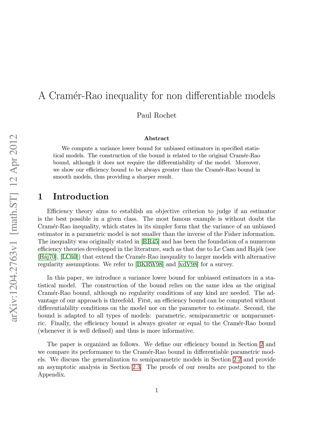 We compute a variance lower bound for unbiased estimators in specified statistical models. The construction of the bound is related to the original Cram\ér-Rao bound, although it does not require the differentiability of the model. Moreover, we show our efficiency bound to be always greater than the Cram\ér-Rao bound in smooth models, thus providing a sharper result.