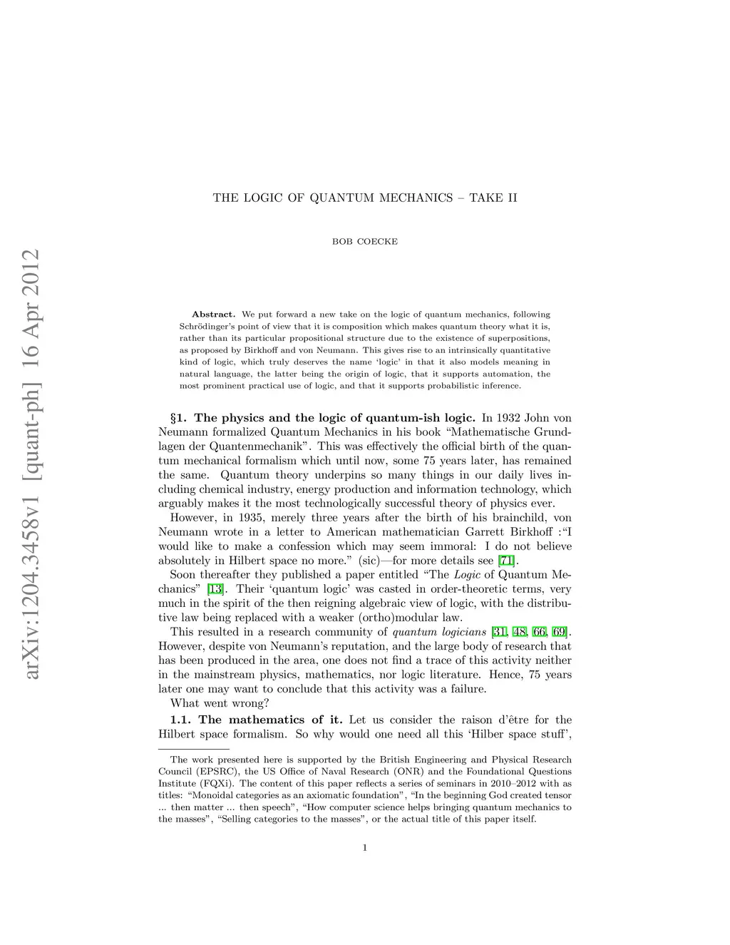 We put forward a new take on the logic of quantum mechanics, following Schroedinger's point of view that it is composition which makes quantum theory what it is, rather than its particular propositional structure due to the existence of superpositions, as proposed by Birkhoff and von Neumann. This gives rise to an intrinsically quantitative kind of logic, which truly deserves the name `logic' in that it also models meaning in natural language, the latter being the origin of logic, that it supports automation, the most prominent practical use of logic, and that it supports probabilistic inference.