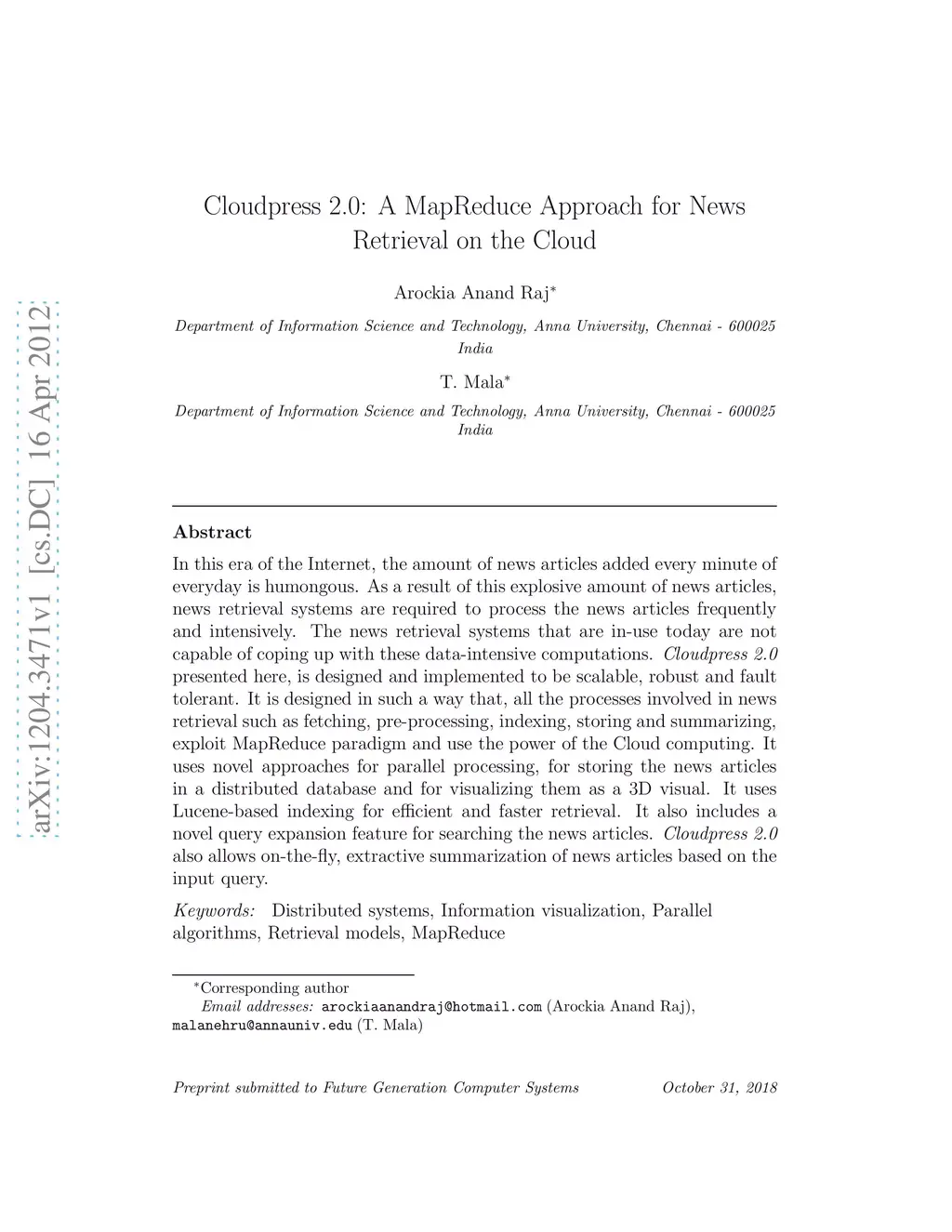 Cloudpress 2.0: A MapReduce Approach for News Retrieval on the Cloud