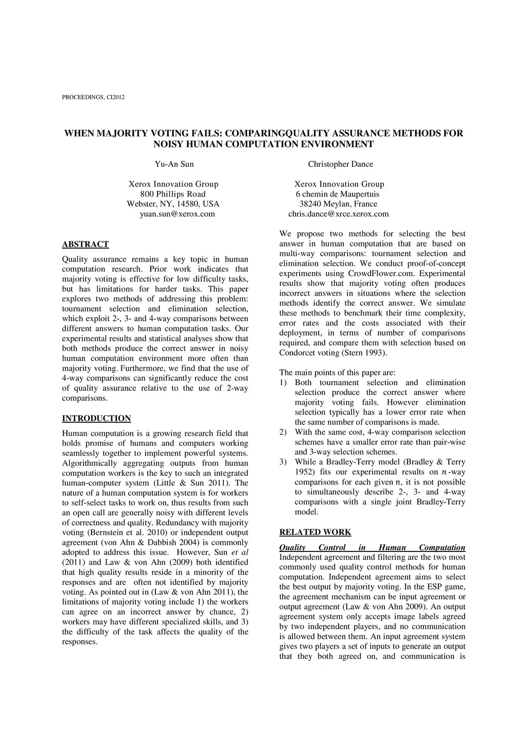 Quality assurance remains a key topic in human computation research. Prior work indicates that majority voting is effective for low difficulty tasks, but has limitations for harder tasks. This paper explores two methods of addressing this problem: tournament selection and elimination selection, which exploit 2-, 3- and 4-way comparisons between different answers to human computation tasks. Our experimental results and statistical analyses show that both methods produce the correct answer in noisy human computation environment more often than majority voting. Furthermore, we find that the use of 4-way comparisons can significantly reduce the cost of quality assurance relative to the use of 2-way comparisons.