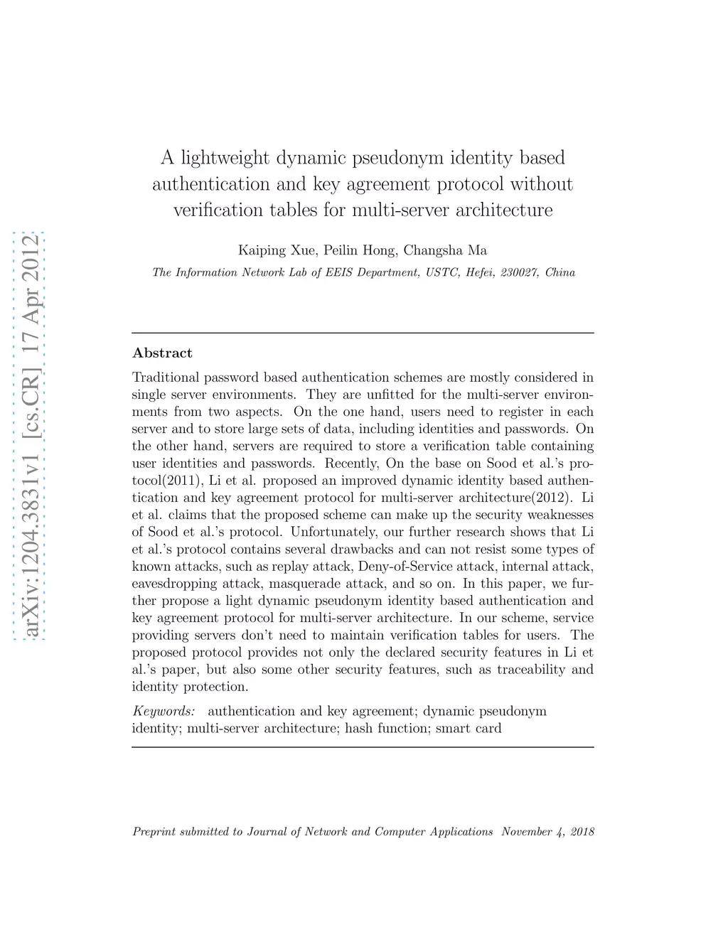 Traditional password based authentication schemes are mostly considered in single server environments. They are unfitted for the multi-server environments from two aspects. On the one hand, users need to register in each server and to store large sets of data, including identities and passwords. On the other hand, servers are required to store a verification table containing user identities and passwords. Recently, On the base on Sood et al.'s protocol(2011), Li et al. proposed an improved dynamic identity based authentication and key agreement protocol for multi-server architecture(2012). Li et al. claims that the proposed scheme can make up the security weaknesses of Sood et al.'s protocol. Unfortunately, our further research shows that Li et al.'s protocol contains several drawbacks and can not resist some types of known attacks, such as replay attack, Deny-of-Service attack, internal attack, eavesdropping attack, masquerade attack, and so on. In this paper, we further propose a light dynamic pseudonym identity based authentication and key agreement protocol for multi-server architecture. In our scheme, service providing servers don't need to maintain verification tables for users. The proposed protocol provides not only the declared security features in Li et al.'s paper, but also some other security features, such as traceability and identity protection.