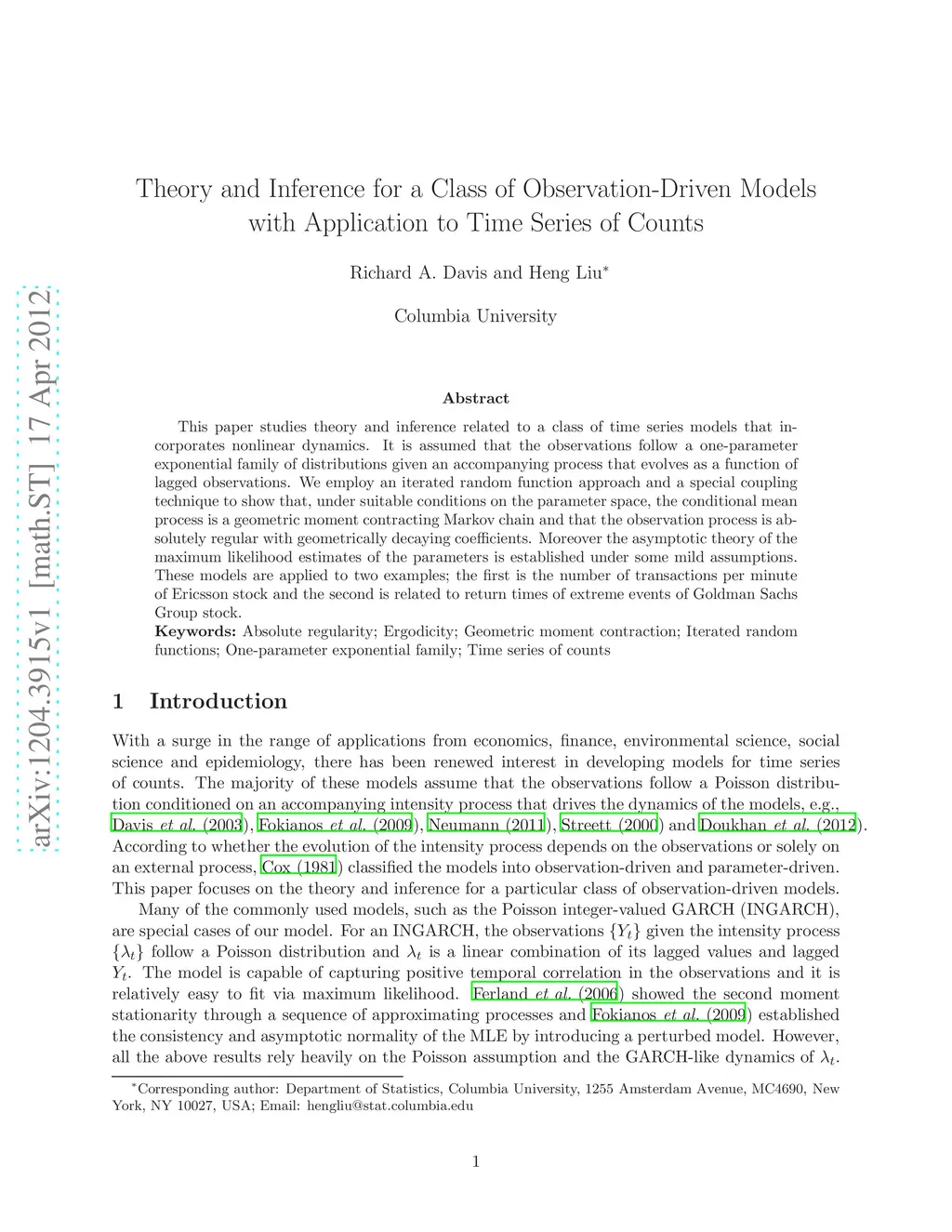 Theory and Inference for a Class of Observation-driven Models with