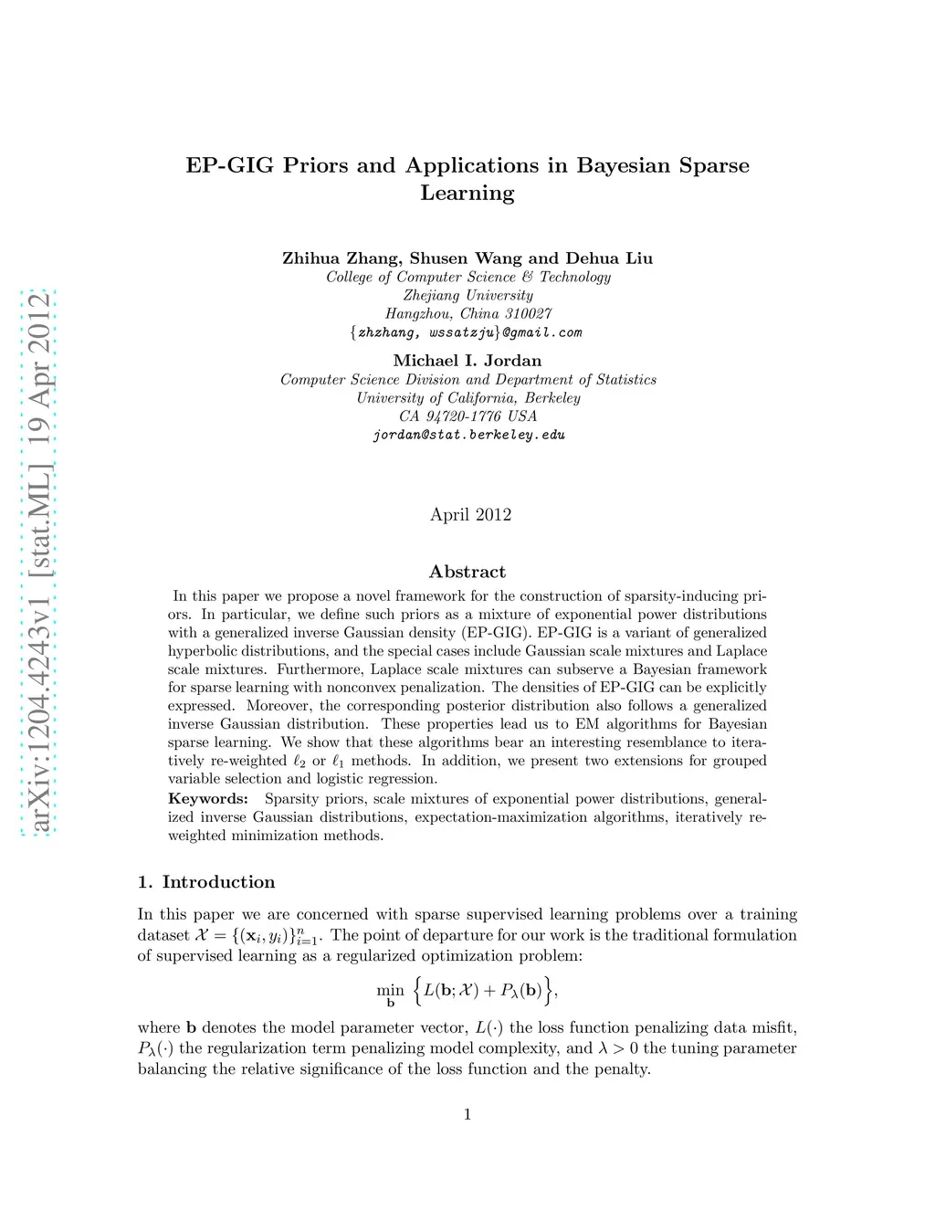 EP-GIG Priors and Applications in Bayesian Sparse Learning
