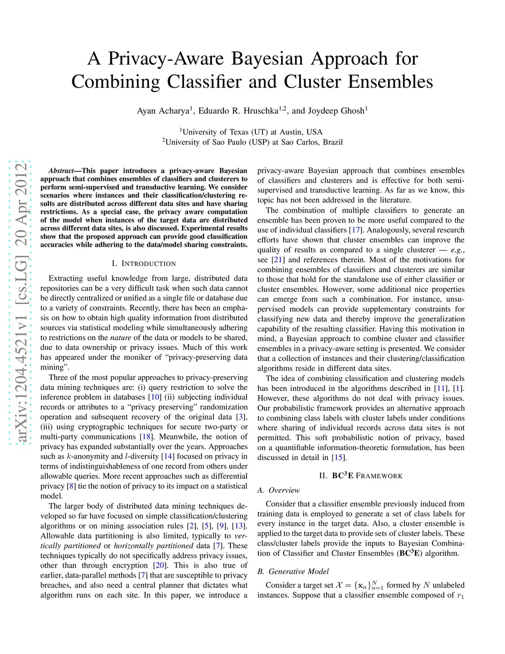 A Privacy-Aware Bayesian Approach for Combining Classifier and Cluster
