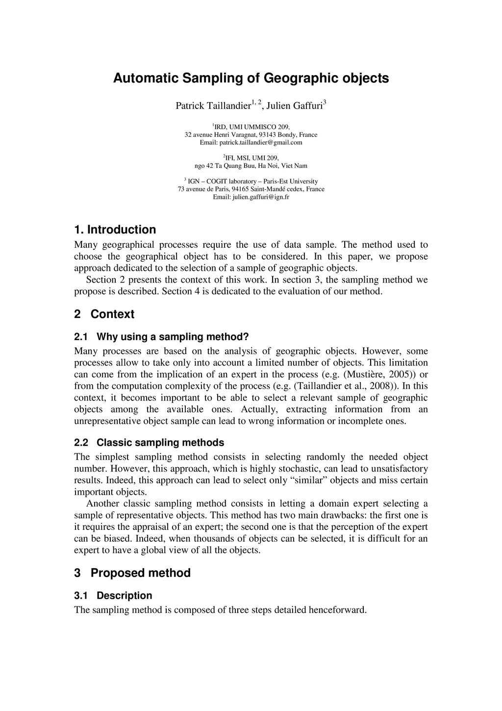 Today, one's disposes of large datasets composed of thousands of geographic objects. However, for many processes, which require the appraisal of an expert or much computational time, only a small part of these objects can be taken into account. In this context, robust sampling methods become necessary. In this paper, we propose a sampling method based on clustering techniques. Our method consists in dividing the objects in clusters, then in selecting in each cluster, the most representative objects. A case-study in the context of a process dedicated to knowledge revision for geographic data generalisation is presented. This case-study shows that our method allows to select relevant samples of objects.