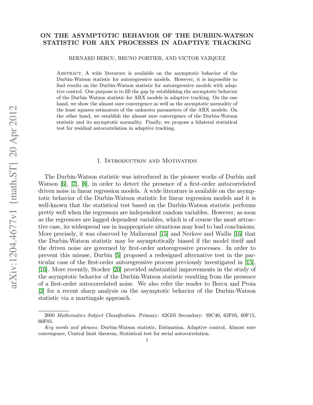 A wide literature is available on the asymptotic behavior of the Durbin-Watson statistic for autoregressive models. However, it is impossible to find results on the Durbin-Watson statistic for autoregressive models with adaptive control. Our purpose is to fill the gap by establishing the asymptotic behavior of the Durbin Watson statistic for ARX models in adaptive tracking. On the one hand, we show the almost sure convergence as well as the asymptotic normality of the least squares estimators of the unknown parameters of the ARX models. On the other hand, we establish the almost sure convergence of the Durbin-Watson statistic and its asymptotic normality. Finally, we propose a bilateral statistical test for residual autocorrelation in adaptive tracking.