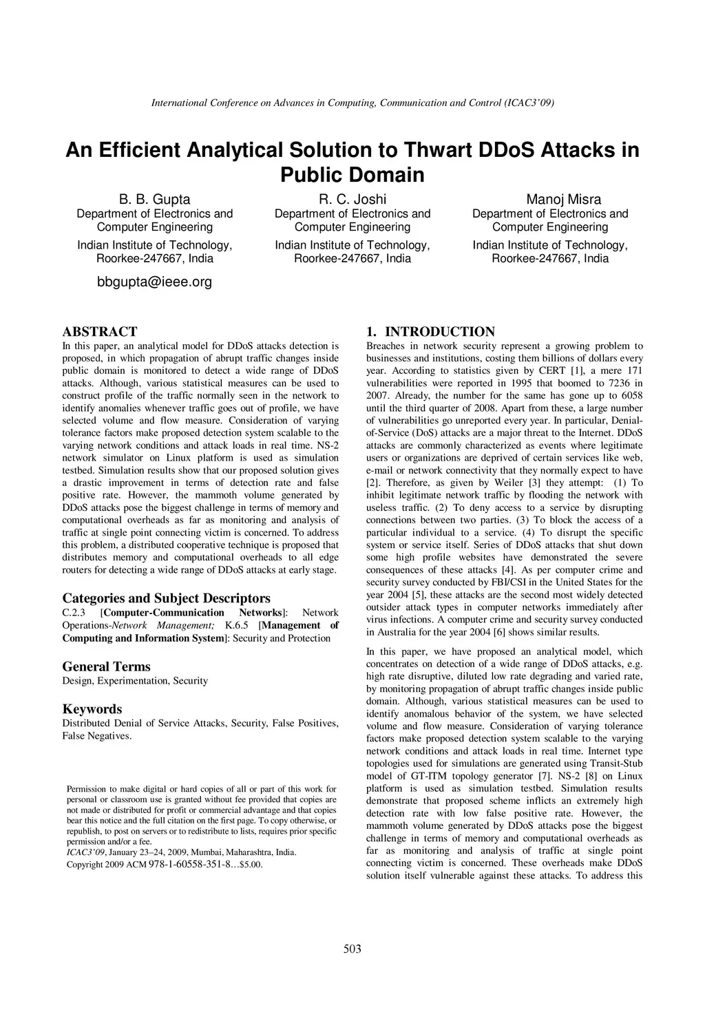 An Efficient Analytical Solution to Thwart DDoS Attacks in Public Domain