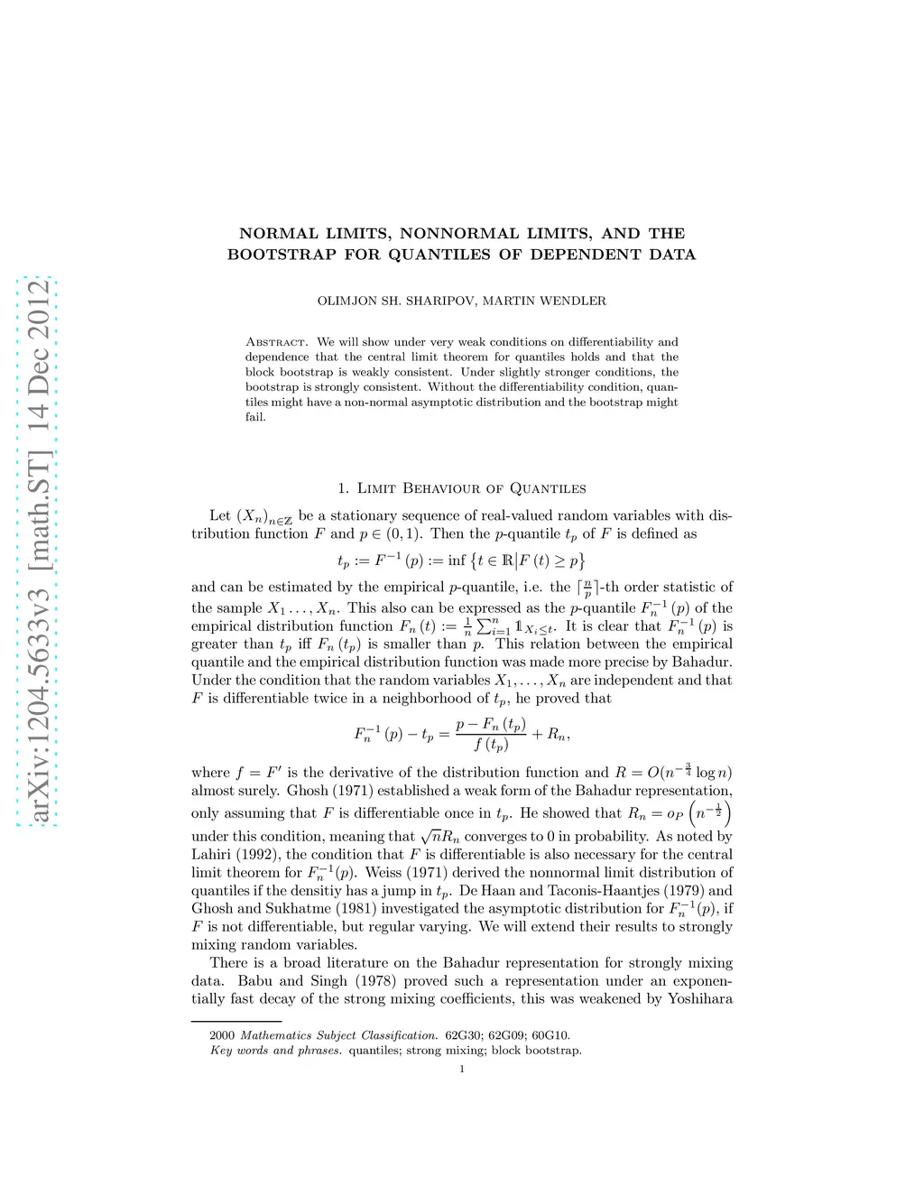 Normal Limits, Nonnormal Limits, and the Bootstrap for Quantiles of