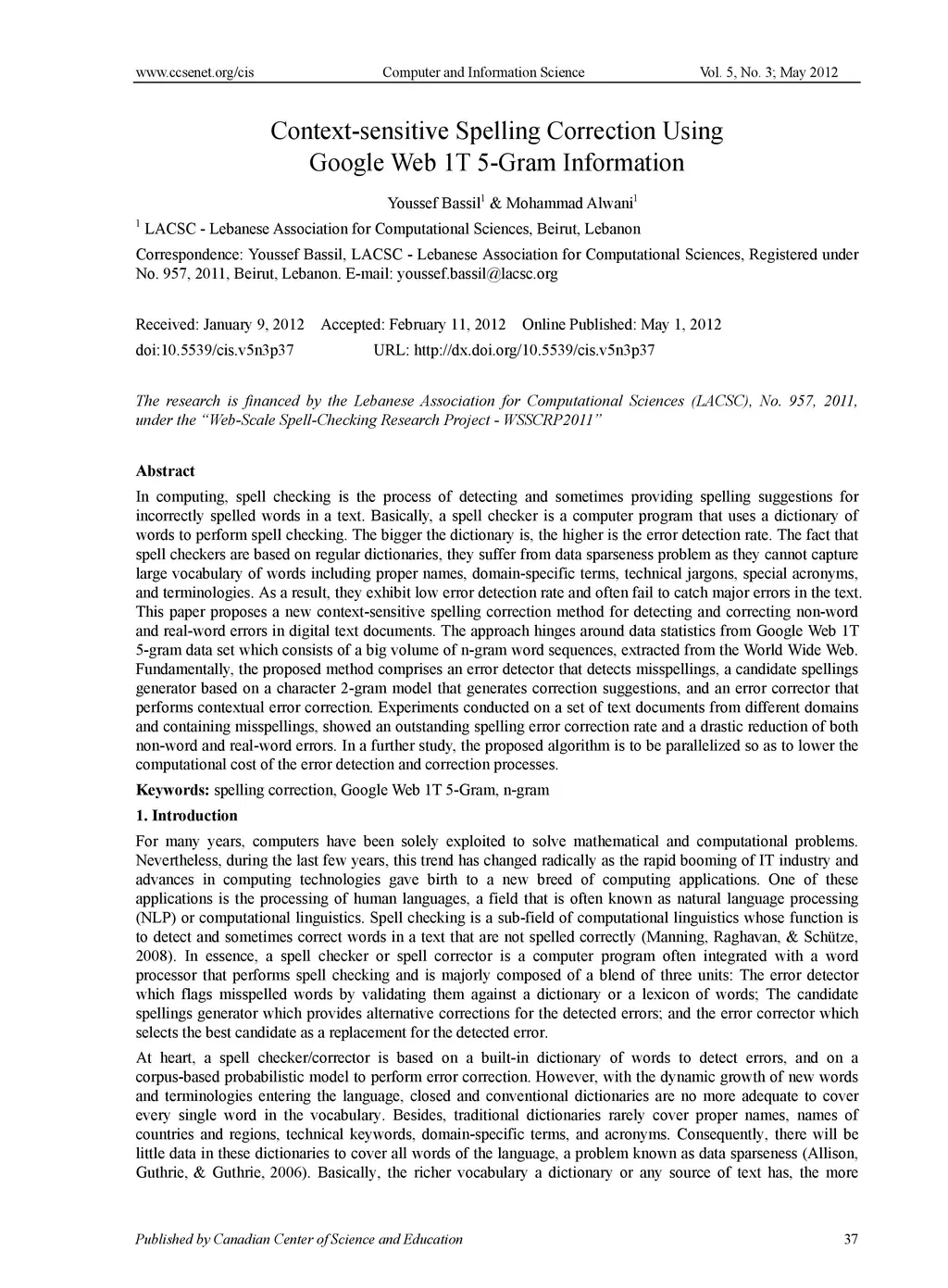 Context-sensitive Spelling Correction Using Google Web 1T 5-Gram