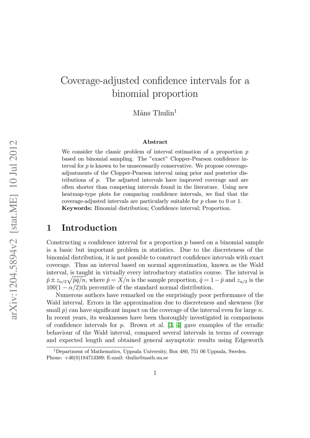 We consider the classic problem of interval estimation of a proportion based on binomial sampling. The "exact" Clopper-Pearson confidence interval for is known to be unnecessarily conservative. We propose coverage-adjustments of the Clopper-Pearson interval using prior and posterior distributions of . The adjusted intervals have improved coverage and are often shorter than competing intervals found in the literature. Using new heatmap-type plots for comparing confidence intervals, we find that the coverage-adjusted intervals are particularly suitable for close to 0 or 1.