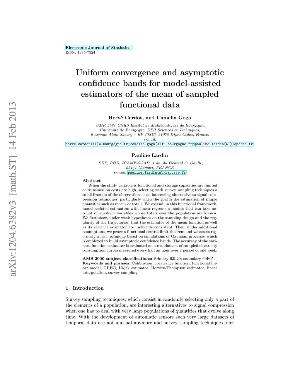 When the study variable is functional and storage capacities are limited or transmission costs are high, selecting with survey sampling techniques a small fraction of the observations is an interesting alternative to signal compression techniques, particularly when the goal is the estimation of simple quantities such as means or totals. We extend, in this functional framework, model-assisted estimators with linear regression models that can take account of auxiliary variables whose totals over the population are known. We first show, under weak hypotheses on the sampling design and the regularity of the trajectories, that the estimator of the mean function as well as its variance estimator are uniformly consistent. Then, under additional assumptions, we prove a functional central limit theorem and we assess rigorously a fast technique based on simulations of Gaussian processes which is employed to build asymptotic confidence bands. The accuracy of the variance function estimator is evaluated on a real dataset of sampled electricity consumption curves measured every half an hour over a period of one week.