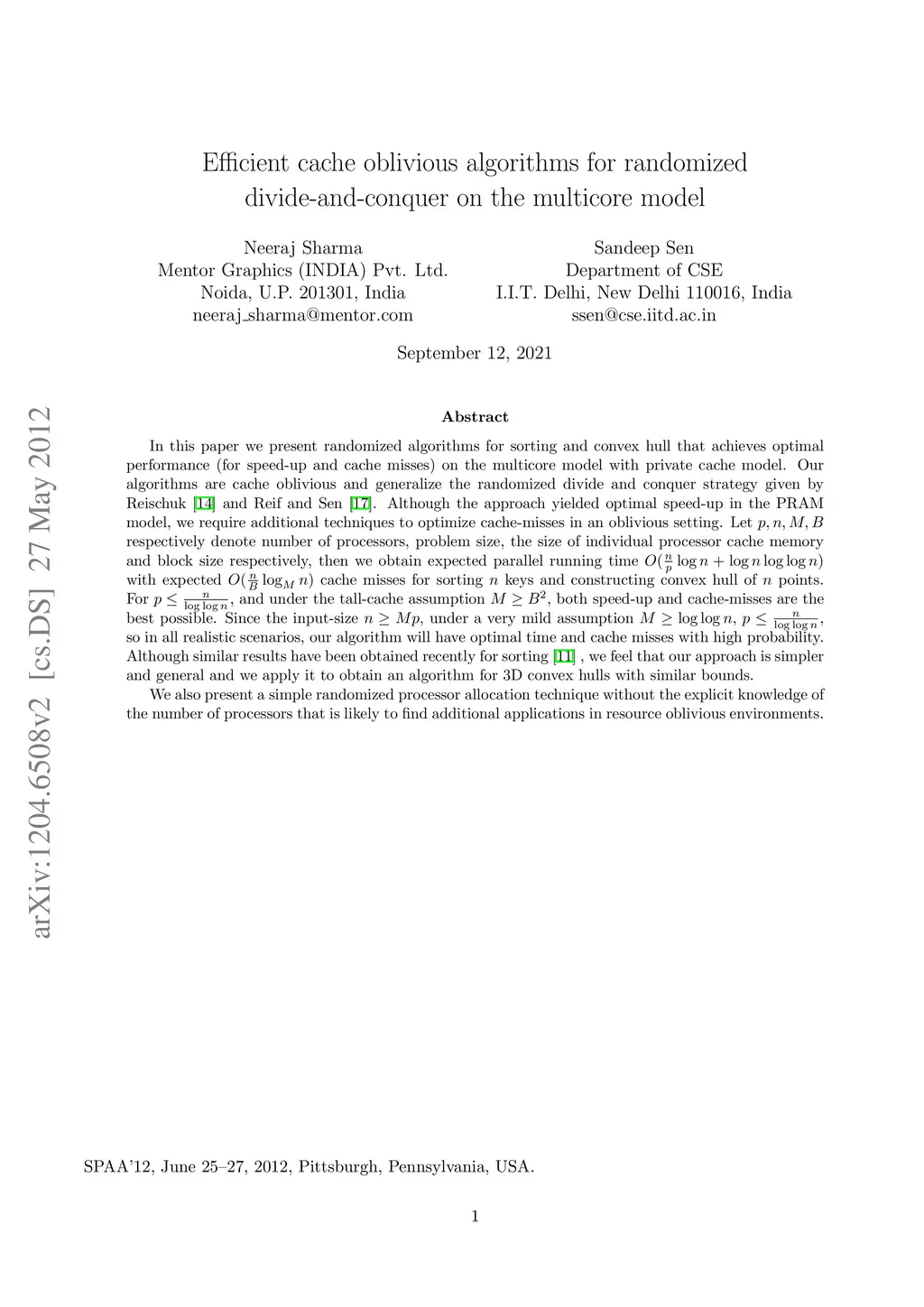 Efficient cache oblivious algorithms for randomized divide-and-conquer