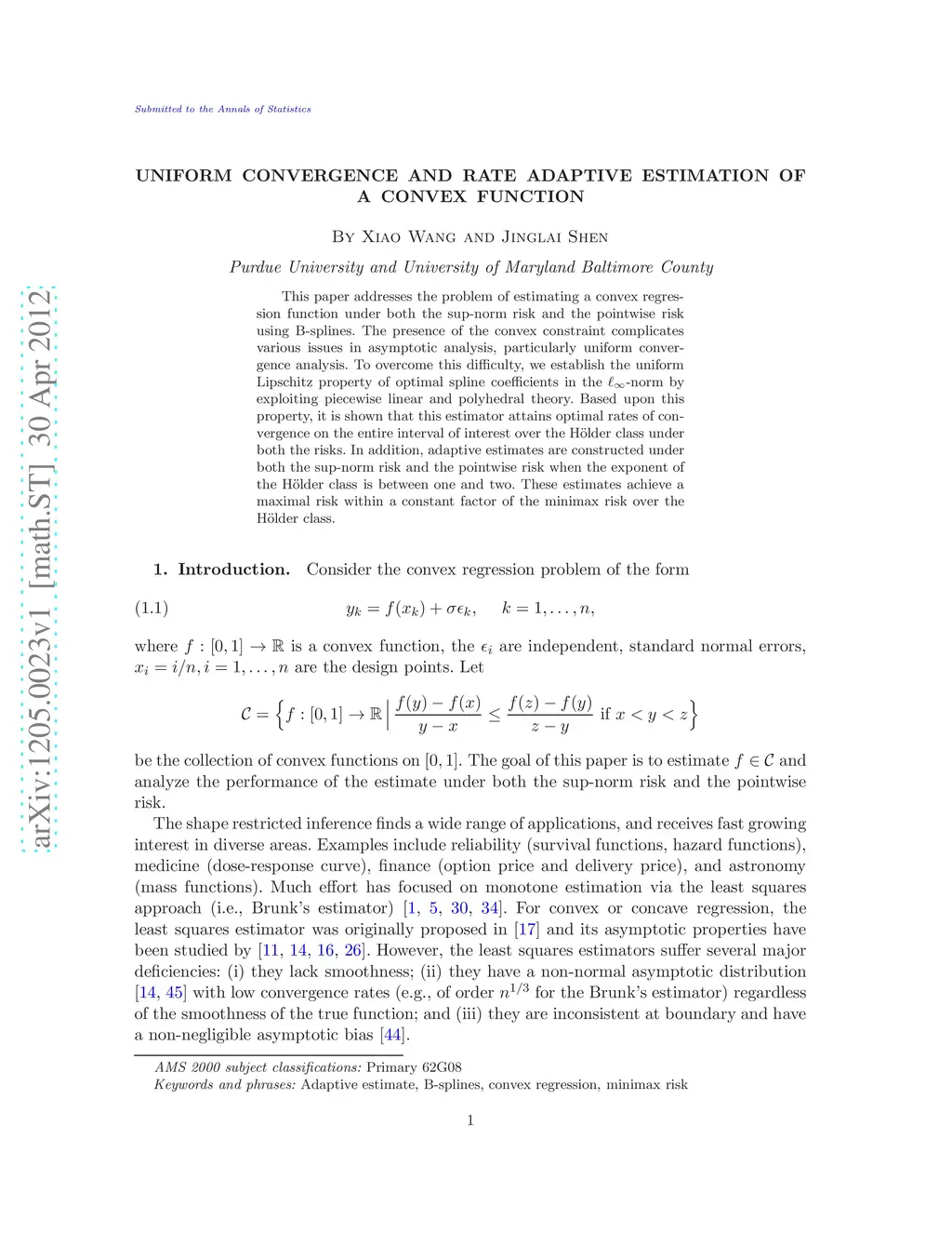 Uniform Convergence and Rate Adaptive Estimation of a Convex Function
