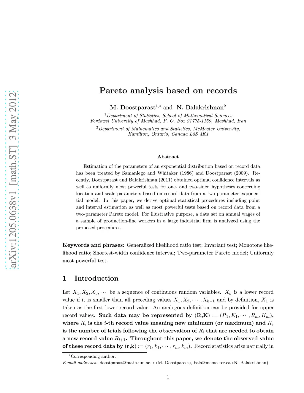 Pareto analysis based on records