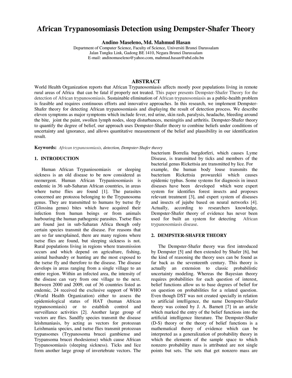 African Trypanosomiasis Detection using Dempster-Shafer Theory