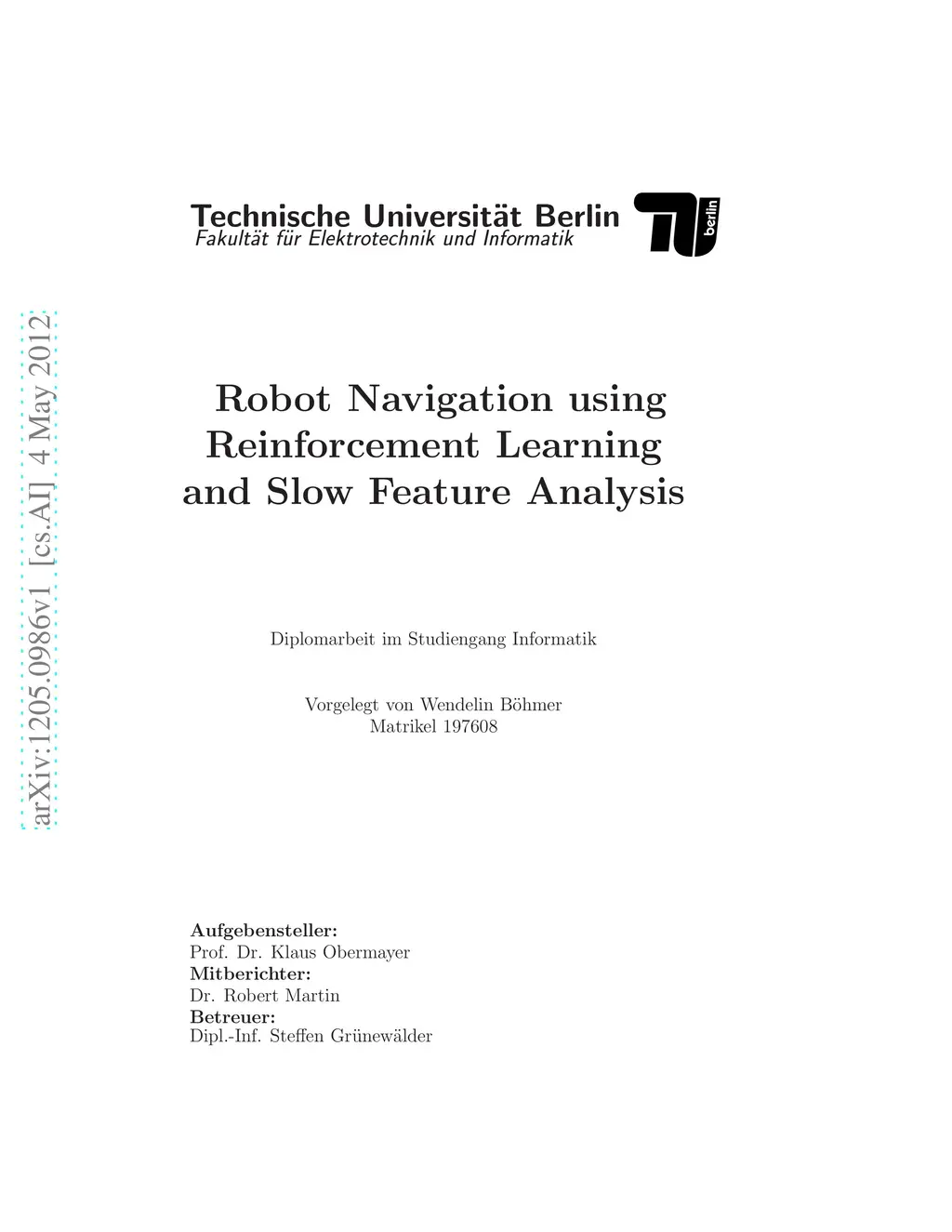 Robot Navigation using Reinforcement Learning and Slow Feature Analysis