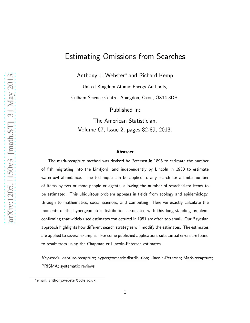 The mark-recapture method was devised by Petersen in 1896 to estimate the number of fish migrating into the Limfjord, and independently by Lincoln in 1930 to estimate waterfowl abundance. The technique applies to any search for a finite number of items by two or more people or agents, allowing the number of searched-for items to be estimated. This ubiquitous problem appears in fields from ecology and epidemiology, through to mathematics, social sciences, and computing. Here we exactly calculate the moments of the hypergeometric distribution associated with this long-standing problem, confirming that widely used estimates conjectured in 1951 are often too small. Our Bayesian approach highlights how different search strategies will modify the estimates. As an example, we assess the accuracy of a systematic literature review, an application we recommend.