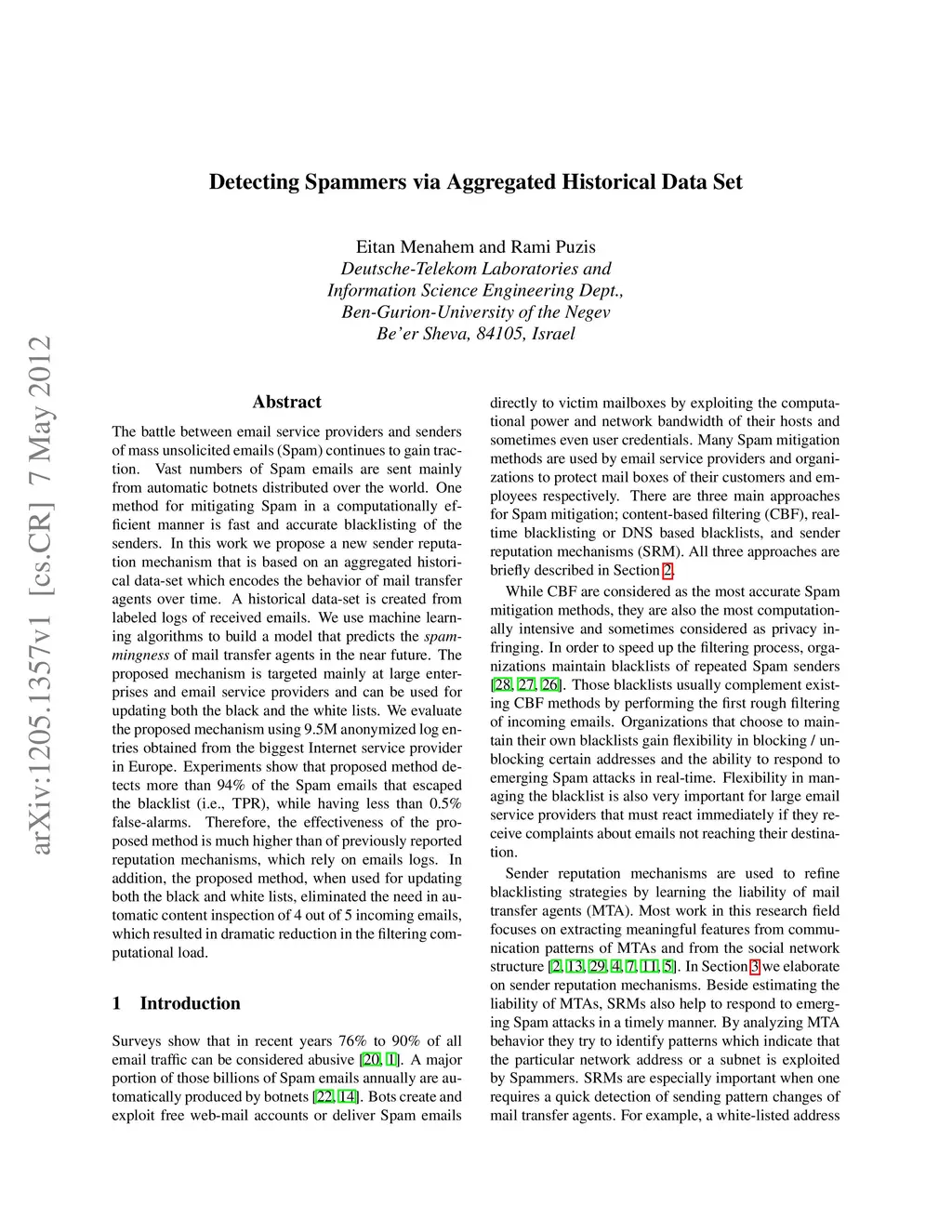 Detecting Spammers via Aggregated Historical Data Set