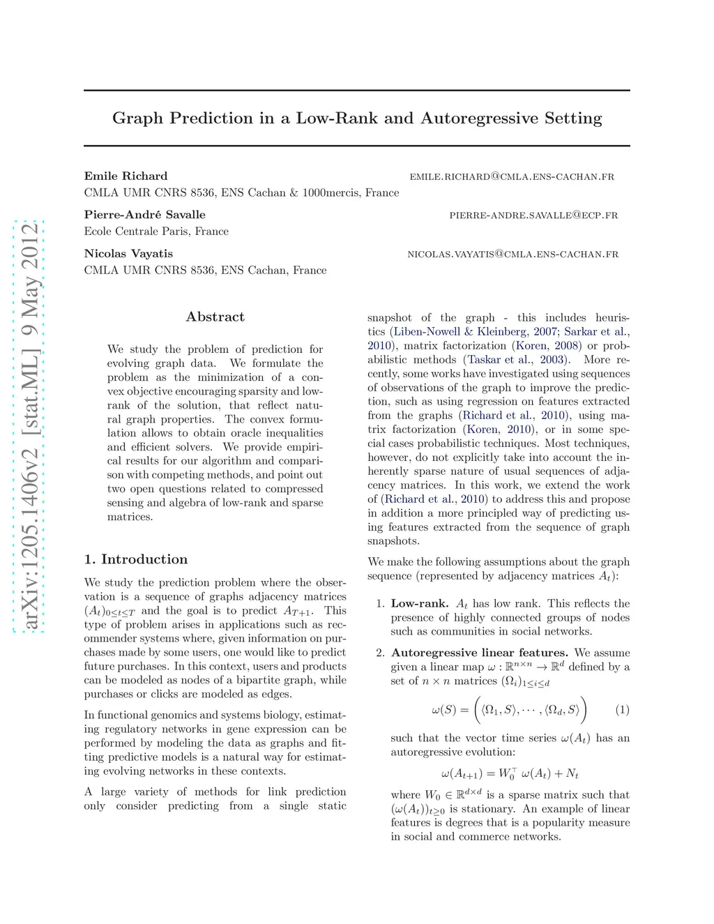 Graph Prediction in a Low-Rank and Autoregressive Setting