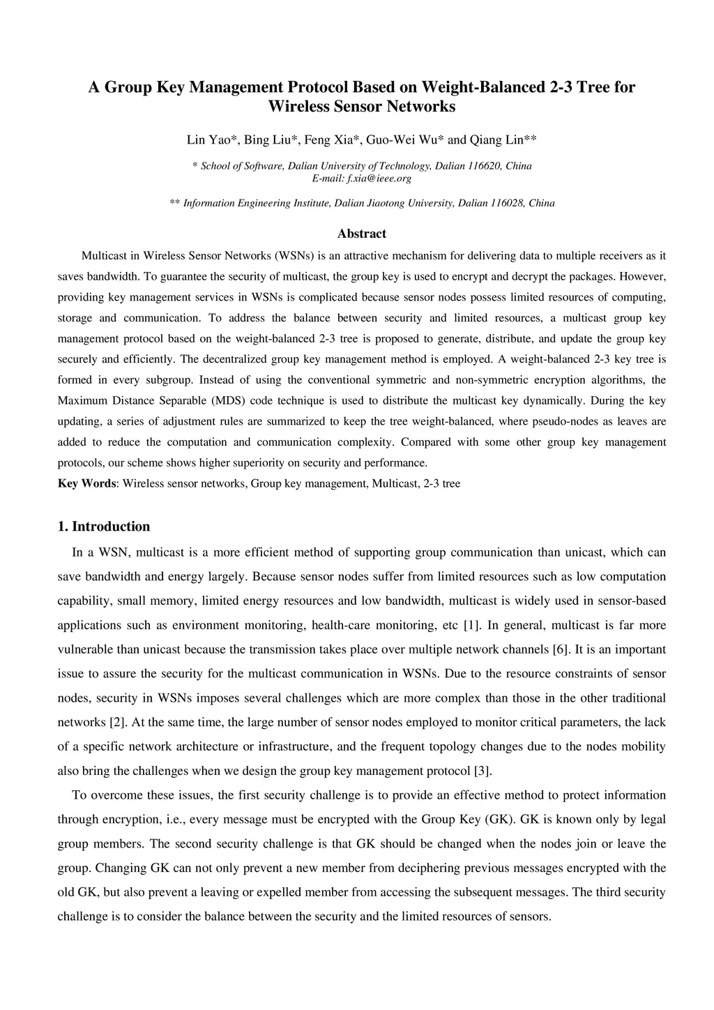 A Group Key Management Protocol Based on Weight-Balanced 2-3 Tree for