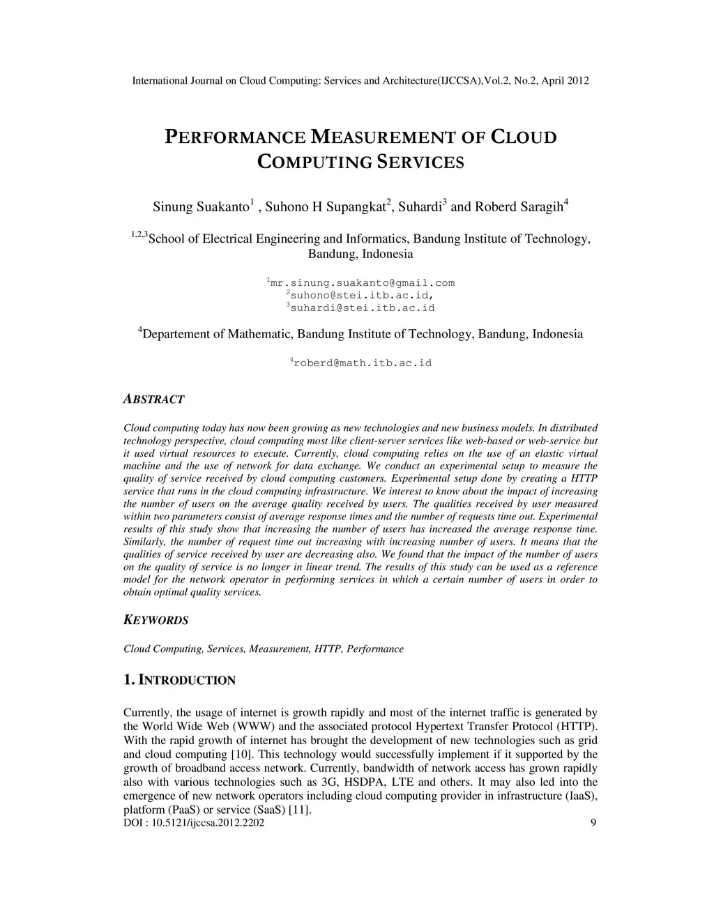 Performance Measurement of Cloud Computing Services