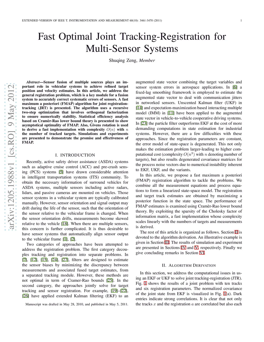 Sensor fusion of multiple sources plays an important role in vehicular systems to achieve refined target position and velocity estimates. In this article, we address the general registration problem, which is a key module for a fusion system to accurately correct systematic errors of sensors. A fast maximum a posteriori (FMAP) algorithm for joint registration-tracking (JRT) is presented. The algorithm uses a recursive two-step optimization that involves orthogonal factorization to ensure numerically stability. Statistical efficiency analysis based on Cram\`{e}r-Rao lower bound theory is presented to show asymptotical optimality of FMAP. Also, Givens rotation is used to derive a fast implementation with complexity O(n) with the number of tracked targets. Simulations and experiments are presented to demonstrate the promise and effectiveness of FMAP.