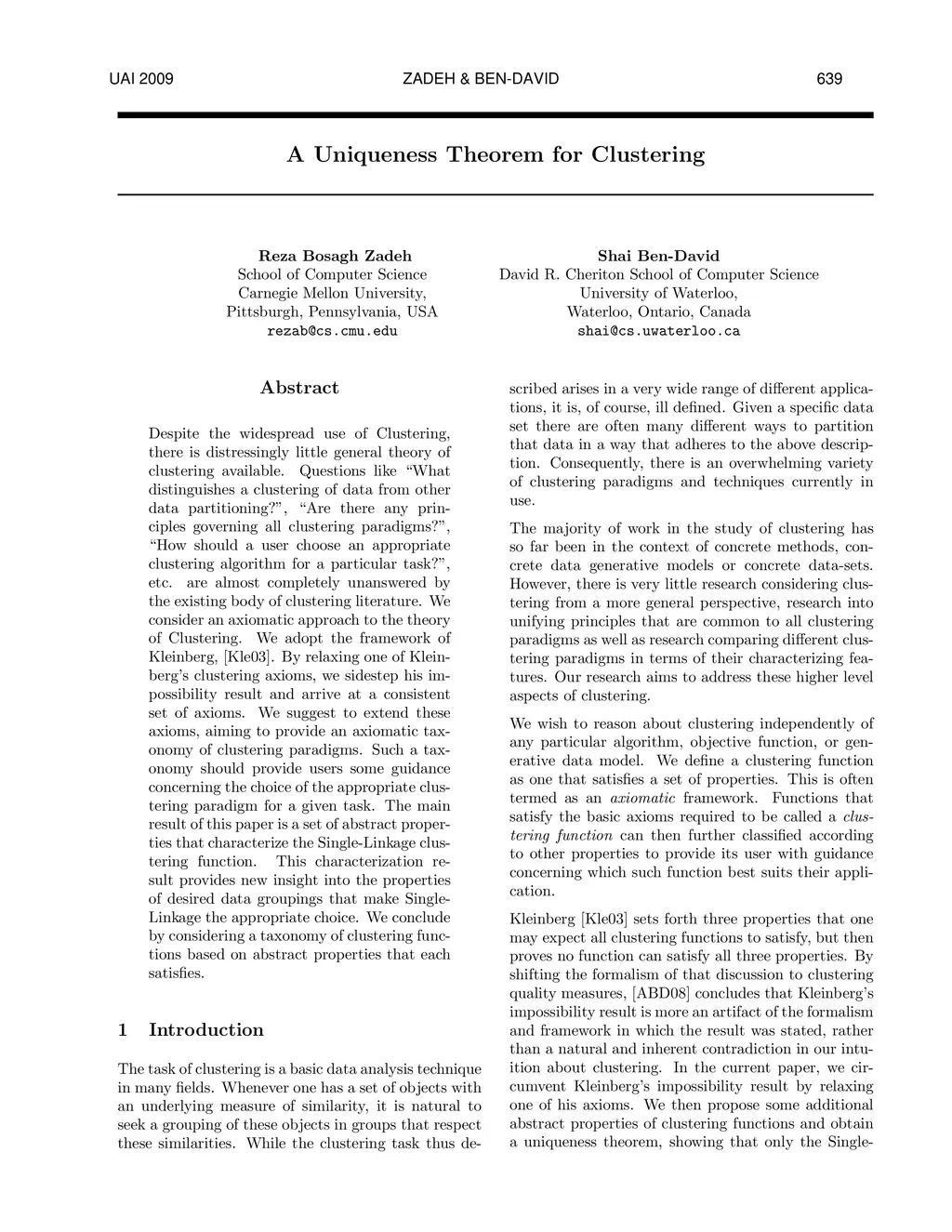 Despite the widespread use of Clustering, there is distressingly little general theory of clustering available. Questions like "What distinguishes a clustering of data from other data partitioning?", "Are there any principles governing all clustering paradigms?", "How should a user choose an appropriate clustering algorithm for a particular task?", etc. are almost completely unanswered by the existing body of clustering literature. We consider an axiomatic approach to the theory of Clustering. We adopt the framework of Kleinberg, [Kle03]. By relaxing one of Kleinberg's clustering axioms, we sidestep his impossibility result and arrive at a consistent set of axioms. We suggest to extend these axioms, aiming to provide an axiomatic taxonomy of clustering paradigms. Such a taxonomy should provide users some guidance concerning the choice of the appropriate clustering paradigm for a given task. The main result of this paper is a set of abstract properties that characterize the Single-Linkage clustering function. This characterization result provides new insight into the properties of desired data groupings that make Single-Linkage the appropriate choice. We conclude by considering a taxonomy of clustering functions based on abstract properties that each satisfies.