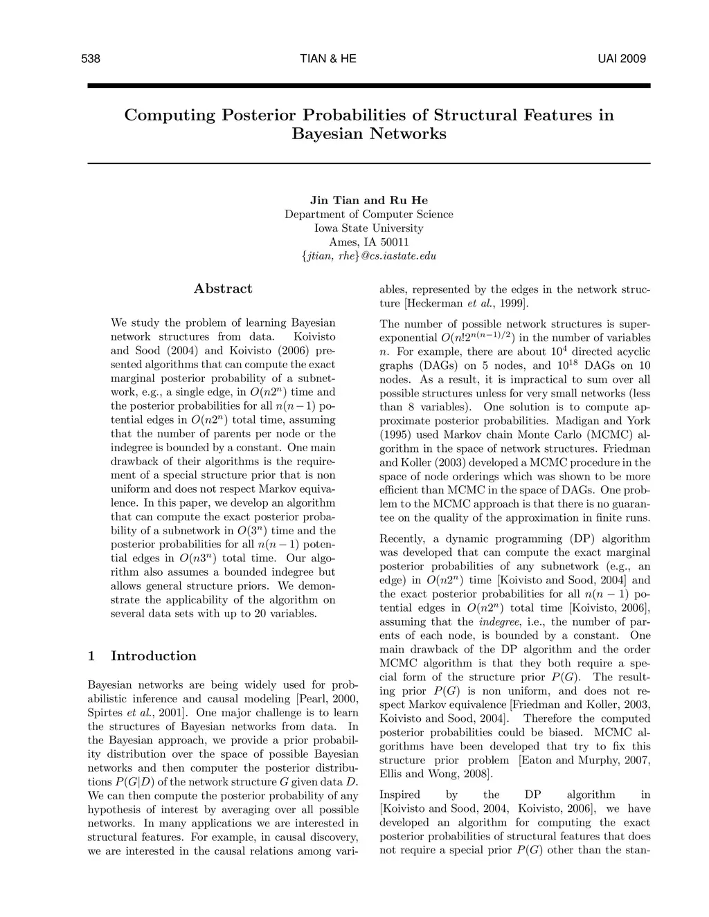 Computing Posterior Probabilities of Structural Features in Bayesian