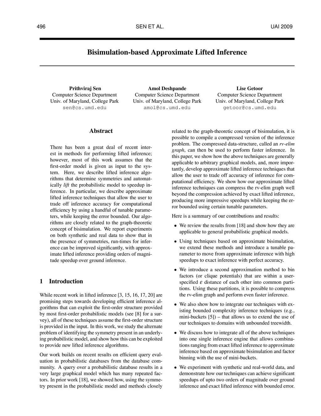 There has been a great deal of recent interest in methods for performing lifted inference; however, most of this work assumes that the first-order model is given as input to the system. Here, we describe lifted inference algorithms that determine symmetries and automatically lift the probabilistic model to speedup inference. In particular, we describe approximate lifted inference techniques that allow the user to trade off inference accuracy for computational efficiency by using a handful of tunable parameters, while keeping the error bounded. Our algorithms are closely related to the graph-theoretic concept of bisimulation. We report experiments on both synthetic and real data to show that in the presence of symmetries, run-times for inference can be improved significantly, with approximate lifted inference providing orders of magnitude speedup over ground inference.