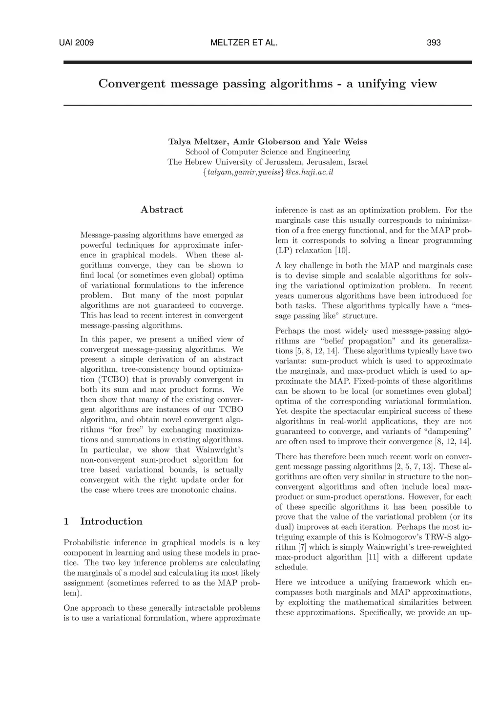 Message-passing algorithms have emerged as powerful techniques for approximate inference in graphical models. When these algorithms converge, they can be shown to find local (or sometimes even global) optima of variational formulations to the inference problem. But many of the most popular algorithms are not guaranteed to converge. This has lead to recent interest in convergent message-passing algorithms. In this paper, we present a unified view of convergent message-passing algorithms. We present a simple derivation of an abstract algorithm, tree-consistency bound optimization (TCBO) that is provably convergent in both its sum and max product forms. We then show that many of the existing convergent algorithms are instances of our TCBO algorithm, and obtain novel convergent algorithms "for free" by exchanging maximizations and summations in existing algorithms. In particular, we show that Wainwright's non-convergent sum-product algorithm for tree based variational bounds, is actually convergent with the right update order for the case where trees are monotonic chains.