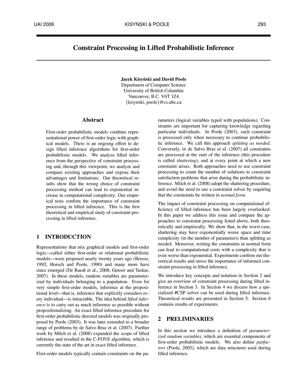 Constraint Processing in Lifted Probabilistic Inference