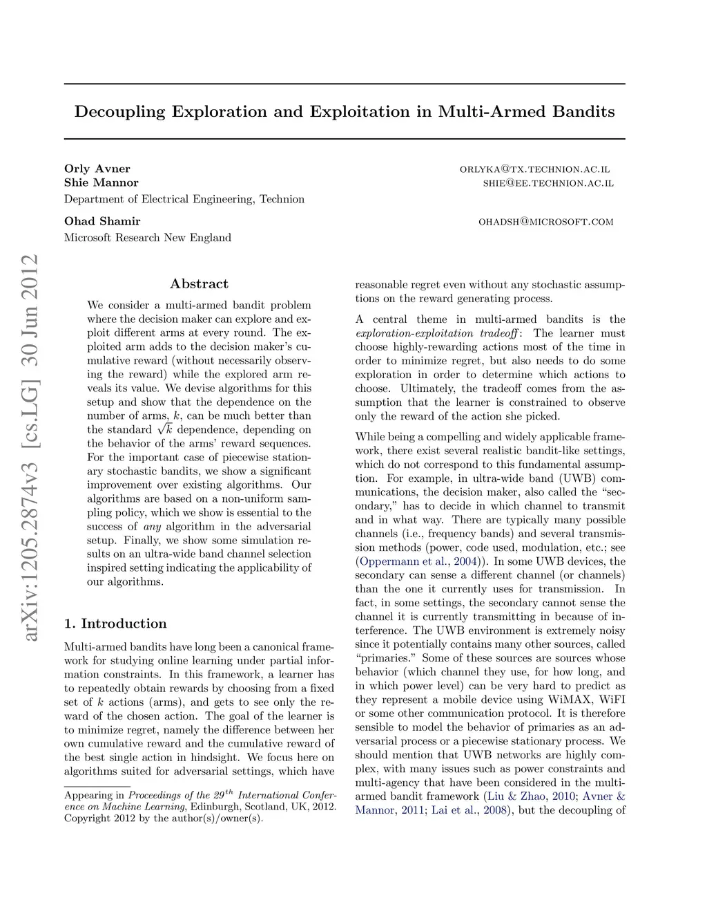 Decoupling Exploration and Exploitation in Multi-Armed Bandits