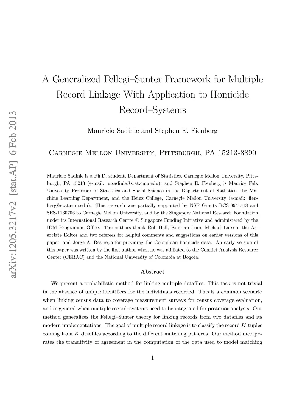 A Generalized Fellegi-Sunter Framework for Multiple Record Linkage With