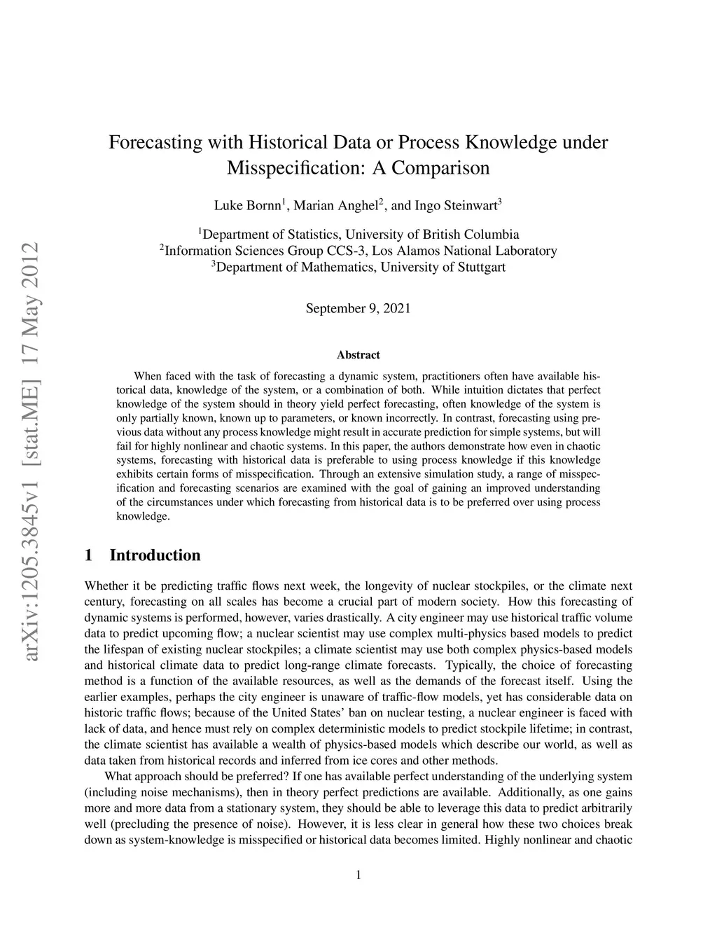 When faced with the task of forecasting a dynamic system, practitioners often have available historical data, knowledge of the system, or a combination of both. While intuition dictates that perfect knowledge of the system should in theory yield perfect forecasting, often knowledge of the system is only partially known, known up to parameters, or known incorrectly. In contrast, forecasting using previous data without any process knowledge might result in accurate prediction for simple systems, but will fail for highly nonlinear and chaotic systems. In this paper, the authors demonstrate how even in chaotic systems, forecasting with historical data is preferable to using process knowledge if this knowledge exhibits certain forms of misspecification. Through an extensive simulation study, a range of misspecification and forecasting scenarios are examined with the goal of gaining an improved understanding of the circumstances under which forecasting from historical data is to be preferred over using process knowledge.