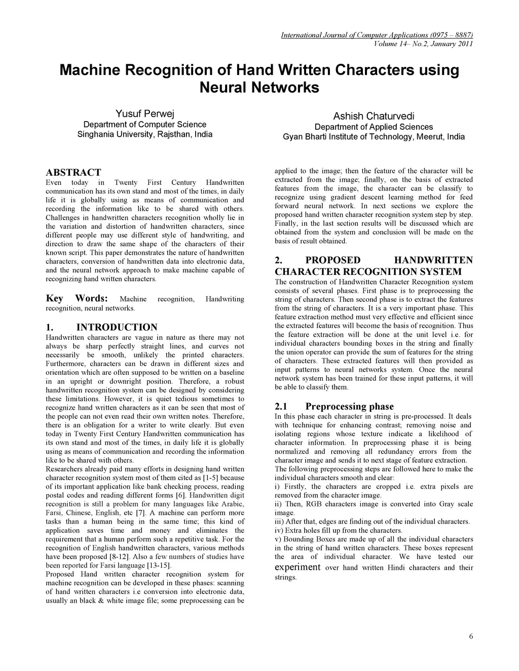 Machine Recognition of Hand Written Characters using Neural Networks