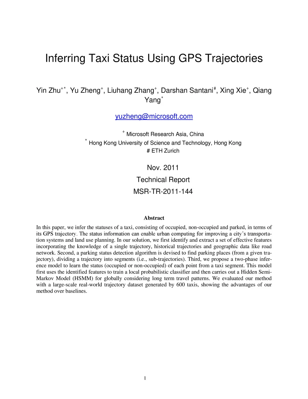 Inferring Taxi Status Using GPS Trajectories