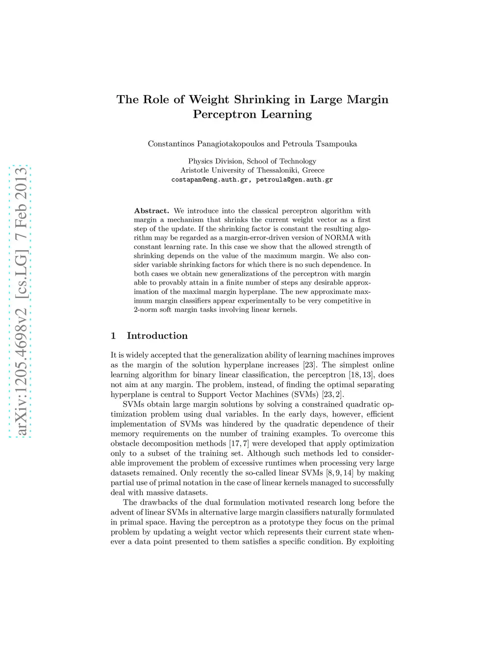 The Role of Weight Shrinking in Large Margin Perceptron Learning