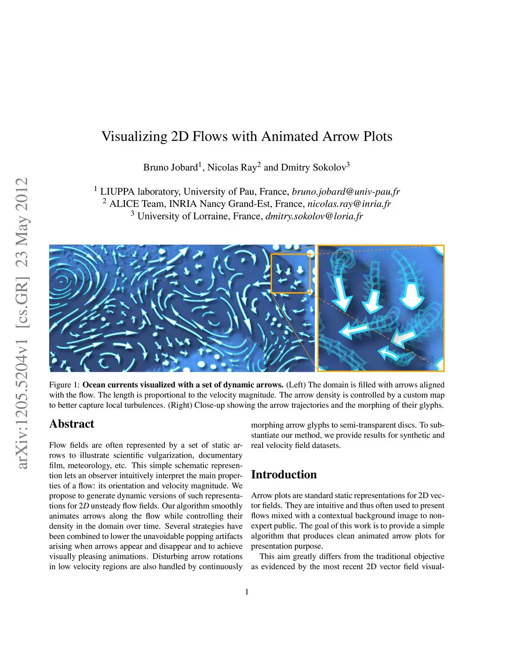 Flow fields are often represented by a set of static arrows to illustrate scientific vulgarization, documentary film, meteorology, etc. This simple schematic representation lets an observer intuitively interpret the main properties of a flow: its orientation and velocity magnitude. We propose to generate dynamic versions of such representations for 2D unsteady flow fields. Our algorithm smoothly animates arrows along the flow while controlling their density in the domain over time. Several strategies have been combined to lower the unavoidable popping artifacts arising when arrows appear and disappear and to achieve visually pleasing animations. Disturbing arrow rotations in low velocity regions are also handled by continuously morphing arrow glyphs to semi-transparent discs. To substantiate our method, we provide results for synthetic and real velocity field datasets.