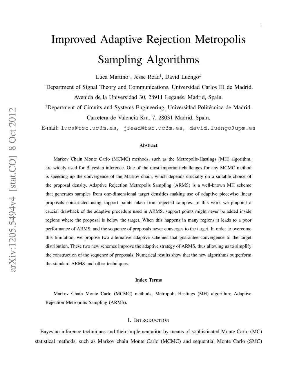Improved Adaptive Rejection Metropolis Sampling Algorithms